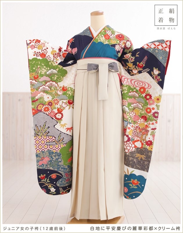 joh1316 (白地に平安慶びの麗華彩都×クリーム袴 /十三参り・卒業式/女の子ジュニア用袴)
