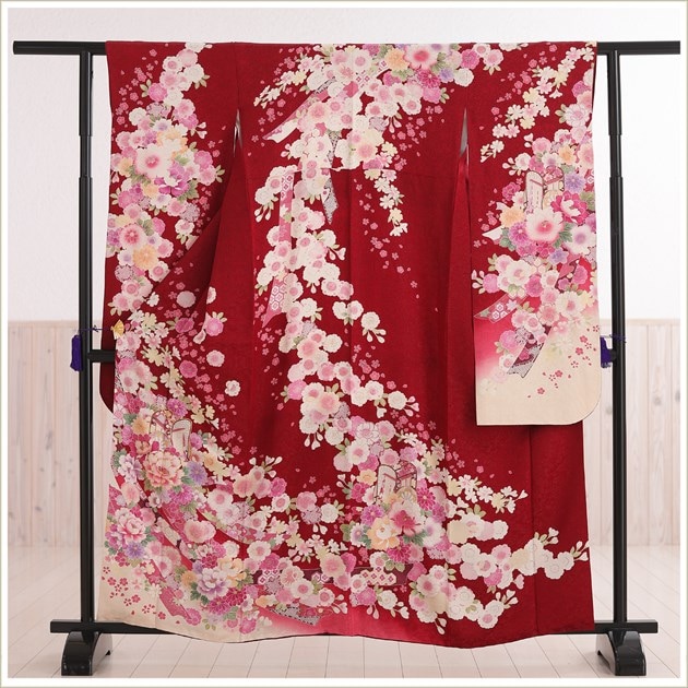 着物、襦袢、袴、胸飾リボン、袴下帯、足袋、腰紐(3本)、 コーリンベルト(2本)、伊達締め(2本)、衿芯、草履、巾着