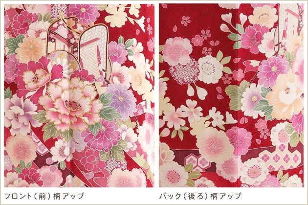 着物、長襦袢、袋帯、帯〆、帯揚げ、重ね衿、和装肌着、足袋、腰紐(5本)、伊達締め(2本)、帯板(大1枚小1枚)、ボテ(帯枕)、コーリンベルト、三重ひも、衿芯、草履、バッグ、髪飾り(オプション)