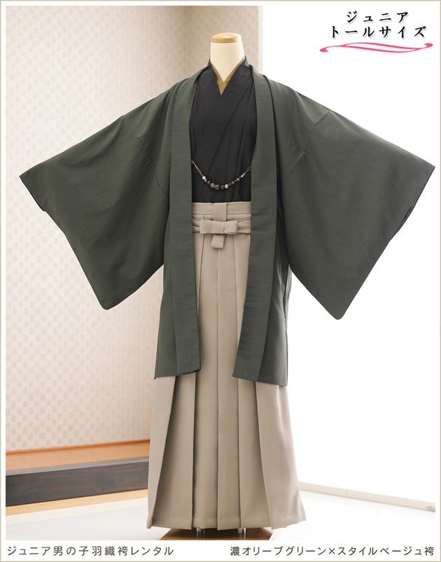 jbhkmo012-4(濃オリーブグリーン×スタイルベージュ袴/ おしゃれジュニア羽織袴)