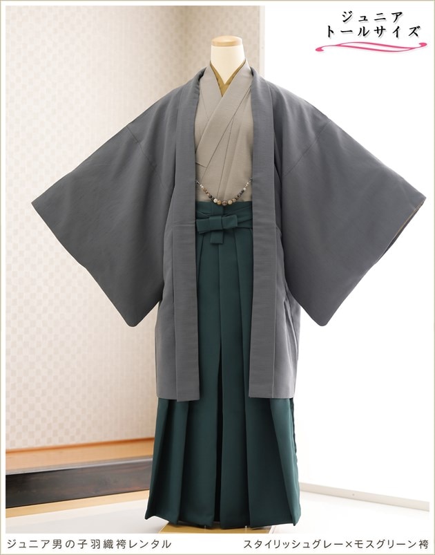 jbhkmo014-4(スタイリッシュグレー×モスグリーン袴/ おしゃれジュニア羽織袴)