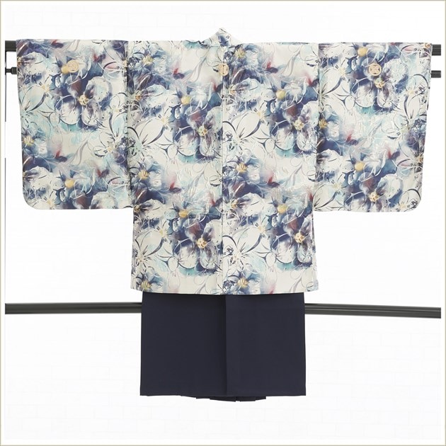 jmo153(小学校卒業式 モダンアートクラシック×シンプルネイビー /12歳前後ジュニア紋付袴)