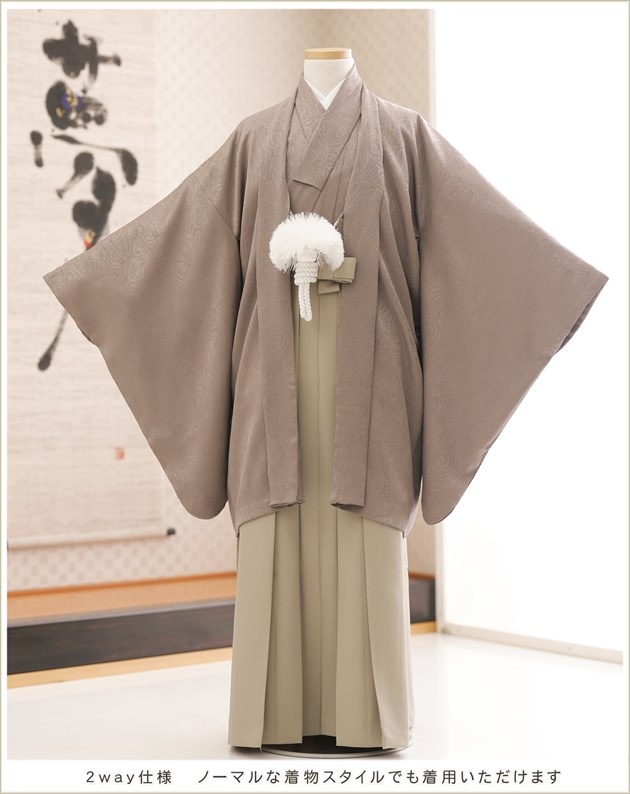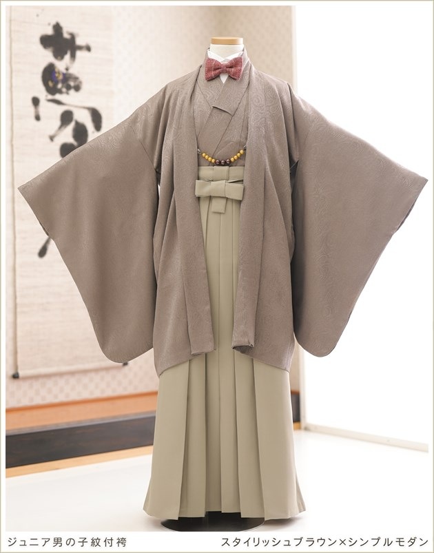jmo174(12歳前後ジュニア羽織袴 「KOMACHI」ブランド スタイリッシュブラウン×シンプルモダン /洋風2wayスタイル)