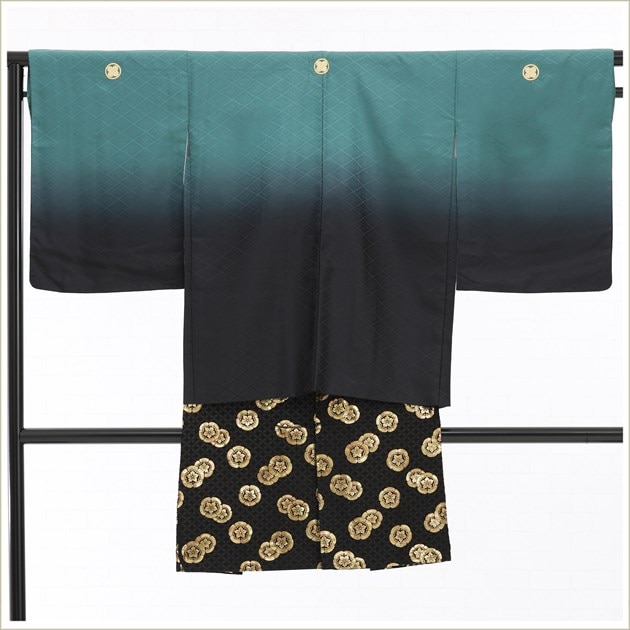 zd1006 (緑ぼかし慶び白黒金ぼかし袴 /ジュニア楽チャック羽織袴)