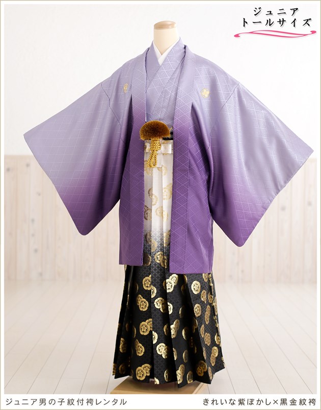 身長高め 158cm〜167cm対応 小学校卒業式 おしゃれ かっこいい ジュニア 男の子 羽織袴レンタル 十三参り 小学生 jbhkmo002-4 無地モダン 着物レンタル メンズ 12歳前後 高級 フルセット 貸衣装 kimono イベント 和服 スタイルプラムパープル×モダンブラック袴