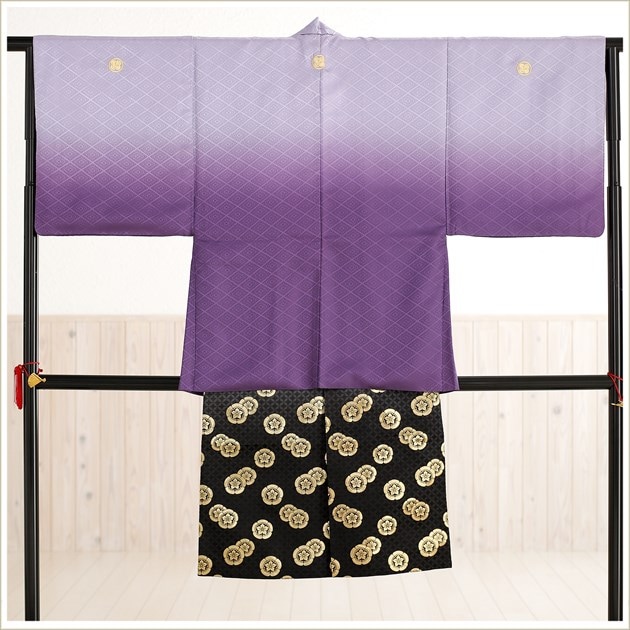 jbmo058-4(きれいな紫ぼかし×黒金紋袴 /紋付きフルセット)