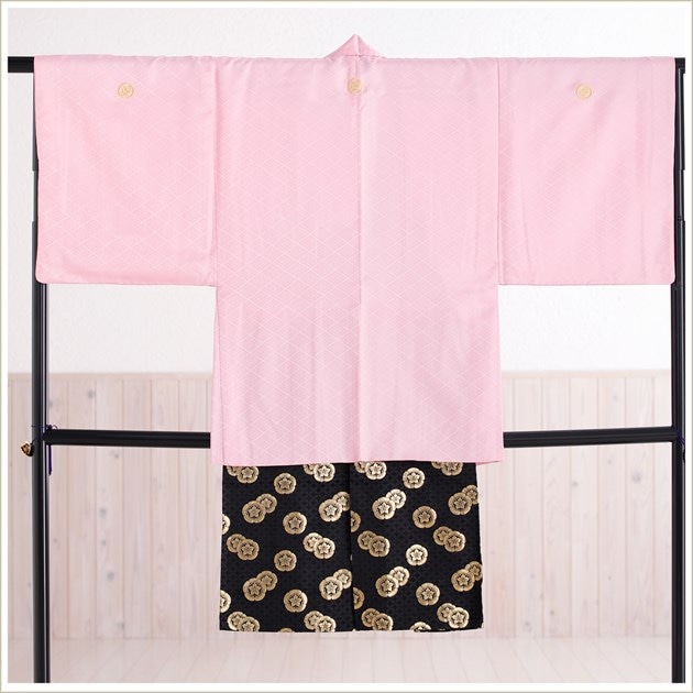 jbmo067-4(スマートピンク×黒金亀甲袴 /紋付きフルセット)