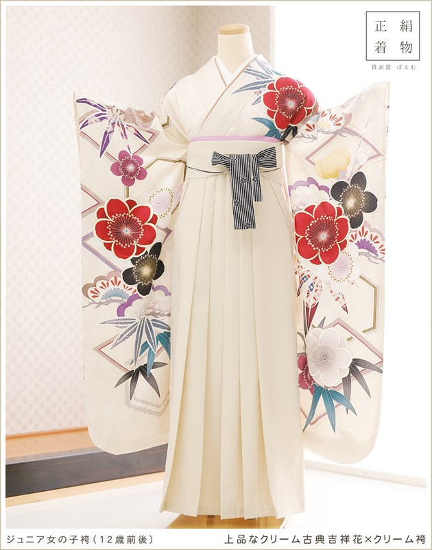 joh8020 (「Close Fit」ブランド 上品なクリーム古典吉祥花×クリーム袴 /十三参り・卒業式/女の子ジュニア用袴)