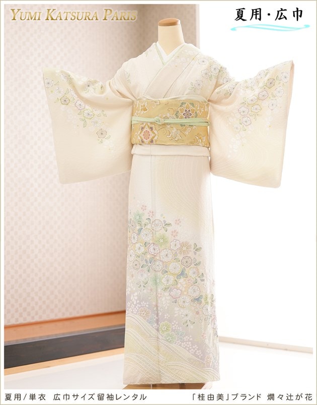 大きいサイズ 広巾 単衣 訪問着レンタル「桂由美」ブランド shh1699 夏用 正絹 着物レンタル 13号〜19号 フルセット 単 結婚式 お宮参り イベント kimono サマー 夏 6月 7月 8月 9月 涼しい ママ 母 母親 houmongi 往復送料無料 2026 燗々辻が花