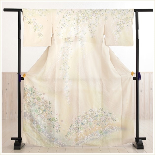 単衣 訪問着レンタル sh1159 夏用 着物レンタル 訪問着フルセット 単 結婚式 お宮参り イベント 夏 6月 7月 8月 9月 付け下げ 涼しい ママ 母 母親 houmongi 2024 「ジャパンスタイル」ブランド くすみアイボリー吉祥花