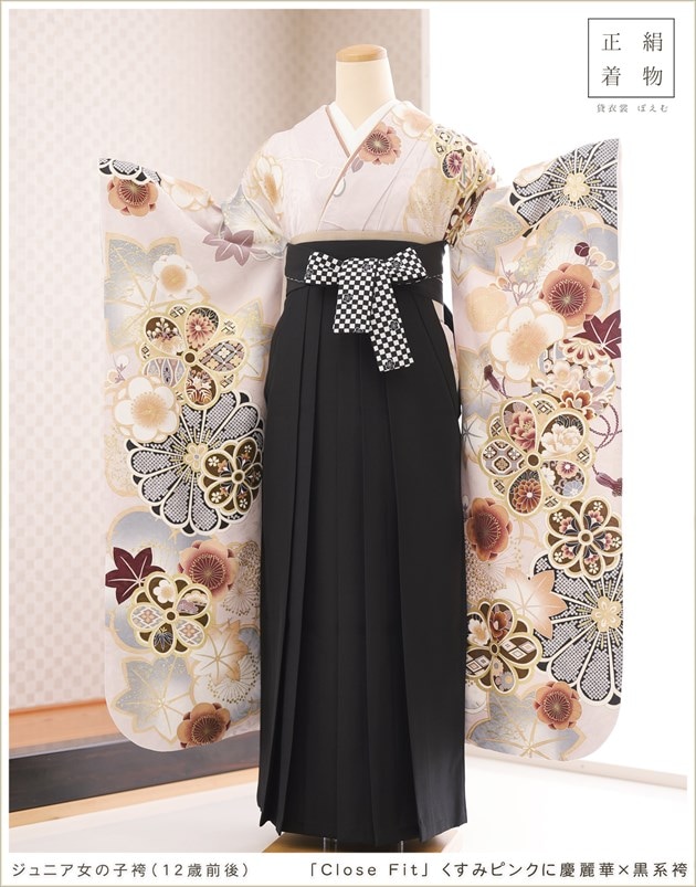 joh1536 (「Close Fit」ブランド くすみピンクに慶麗華×黒系袴 /十三参り・卒業式/女の子ジュニア用袴)