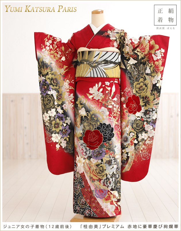jkfb1289(「桂由美」プレミアム 赤地に豪華慶び絢爛華 /女の子ジュニア着物)