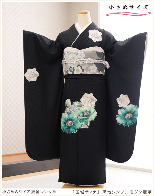 fb1522 (「玉城ティナ」ブランド 黒地シンプルモダン麗華/小さめSサイズ振袖)