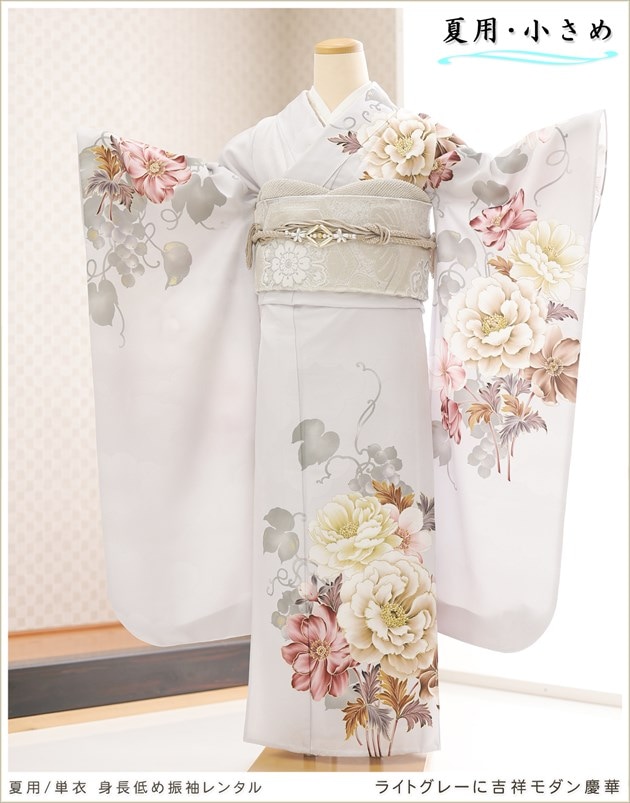 sf8045 (ライトグレーに吉祥モダン慶華 /夏用「単衣」振袖レンタル)