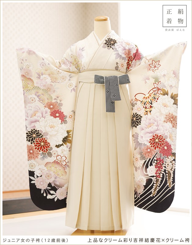 joh1534 (上品なクリーム彩り吉祥結慶花×クリーム袴 /十三参り・卒業式/女の子ジュニア用袴)