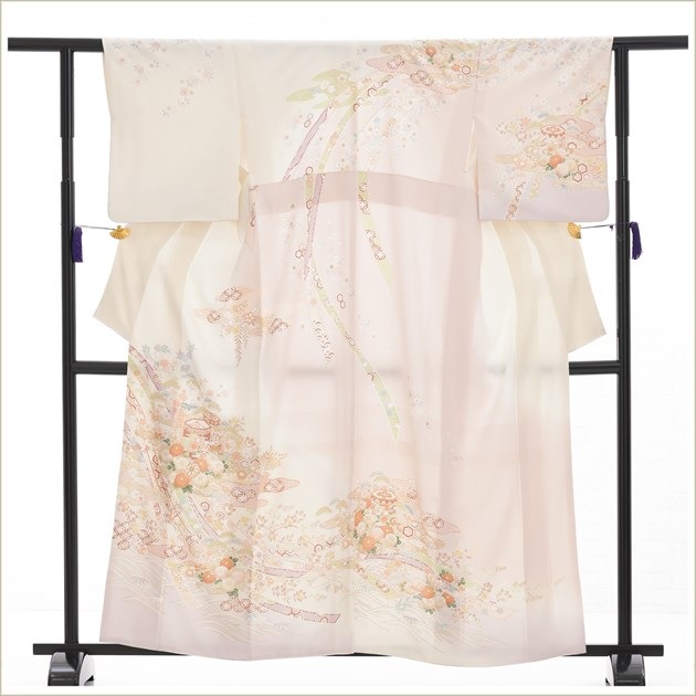hw1691s(小さめSサイズ訪問着 淡いクリームピンクに絢爛貝桶慶陽華/小さめ着物)