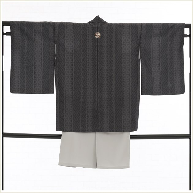 身長高め 158cm〜167cm対応 小学校卒業式 ジュニア 男の子 紋付袴レンタル 十三参り 小学生 jbmo032-4 メンズ 12歳前後 羽織袴 フルセット 着物レンタル 貸衣装 kimono イベント 和服 スタイリッシュグレー×黒銀縞袴