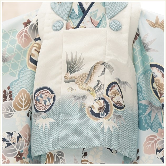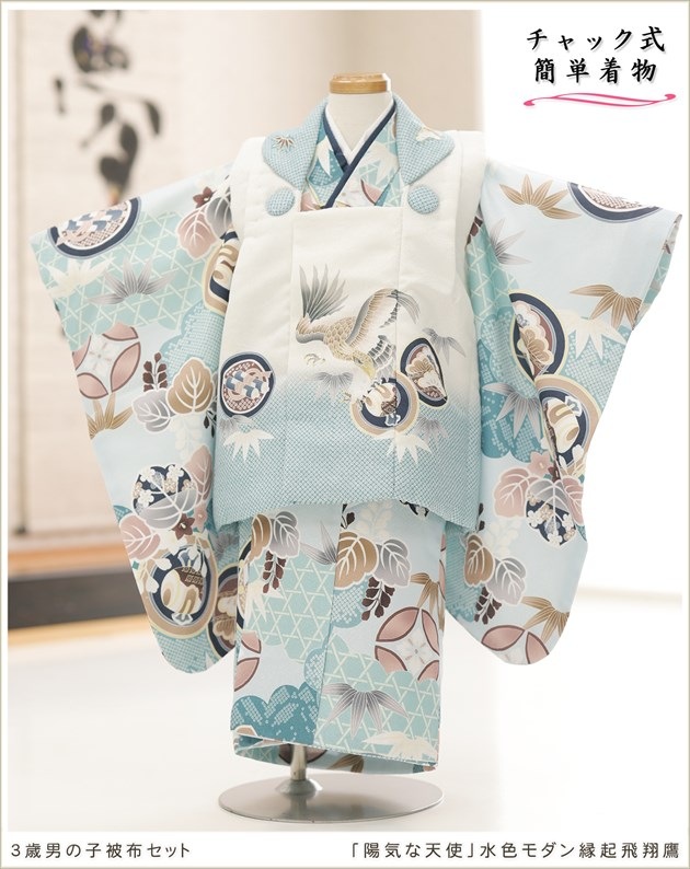 zdf003-2(「陽気な天使」ブランド 水色モダン縁起飛翔鷹/3歳男の子被布)